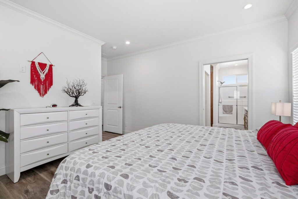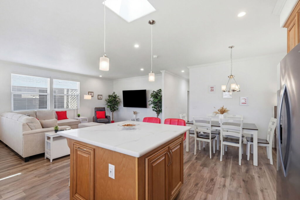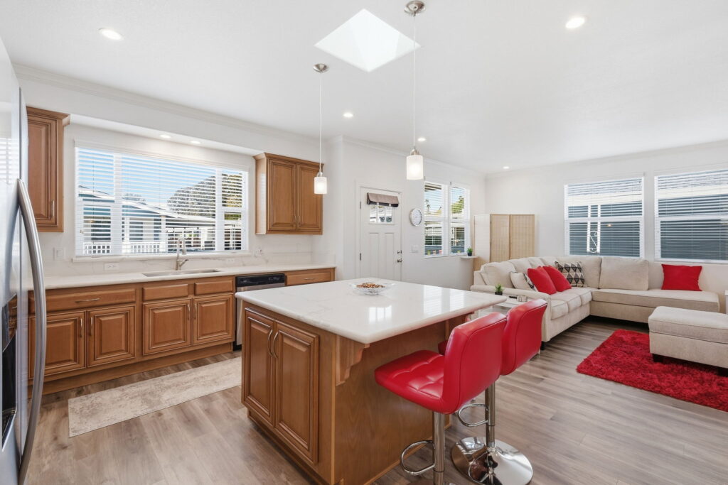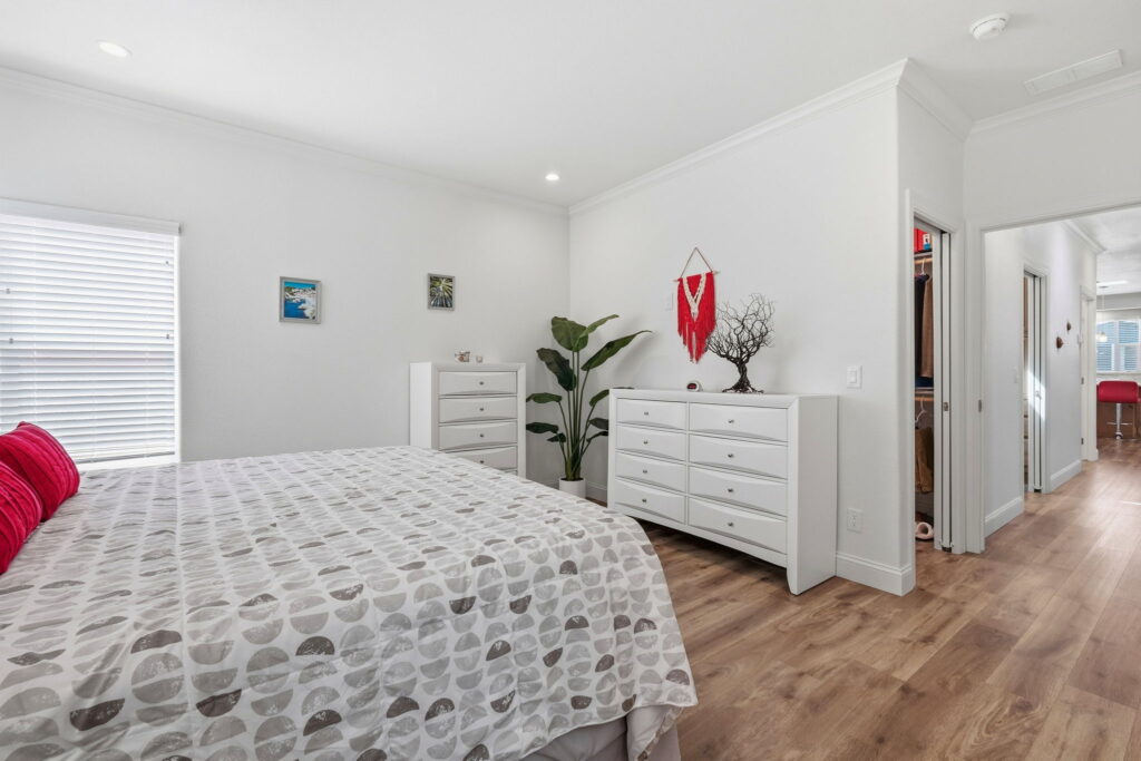 Visit us and experience the comfortable luxury of this wonderful, affordable Quality Home. This unique custom floor plan has many important and thoughtfully designed features not found in any other homes. Large rooms, beautiful bathrooms, wide doorways, 9-foot ceilings, crown moldings, beautiful high-quality laminate floors. The fabulous kitchen has elegant quartz counters, a large island with trash and recycle, pot and pan pull-outs, stainless steel appliances and tons of gorgeous cabinet space. Throughout the house there is plenty of comfortable space for furnishings, living, cooking, entertaining, relaxing, and watching TV! S/N 1507A/B.