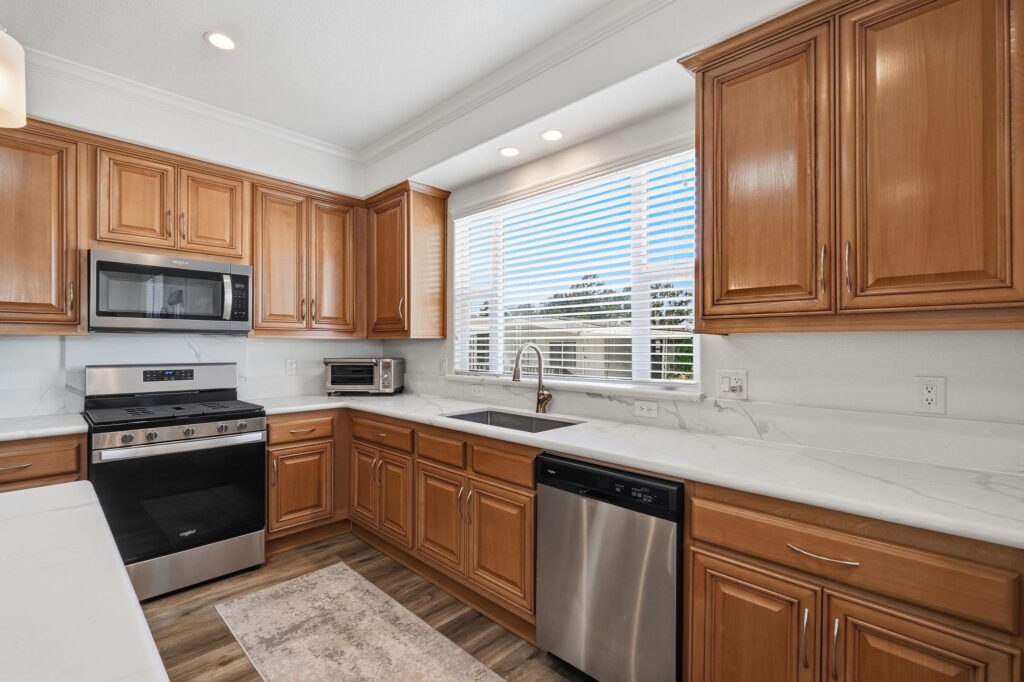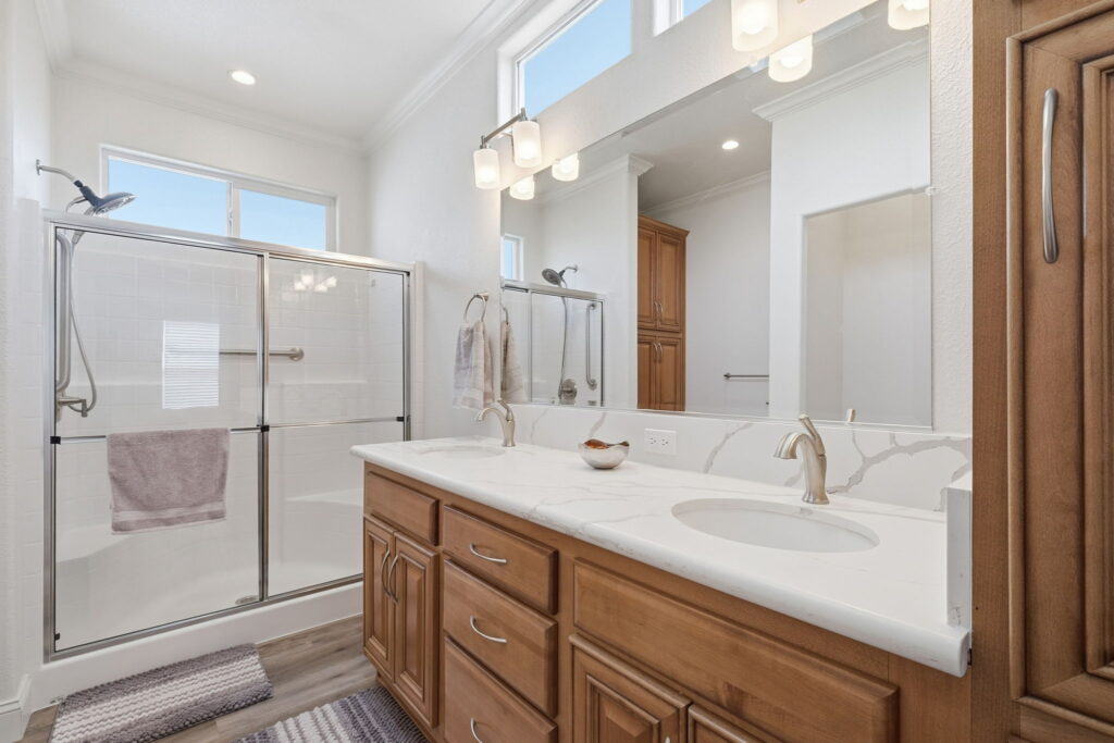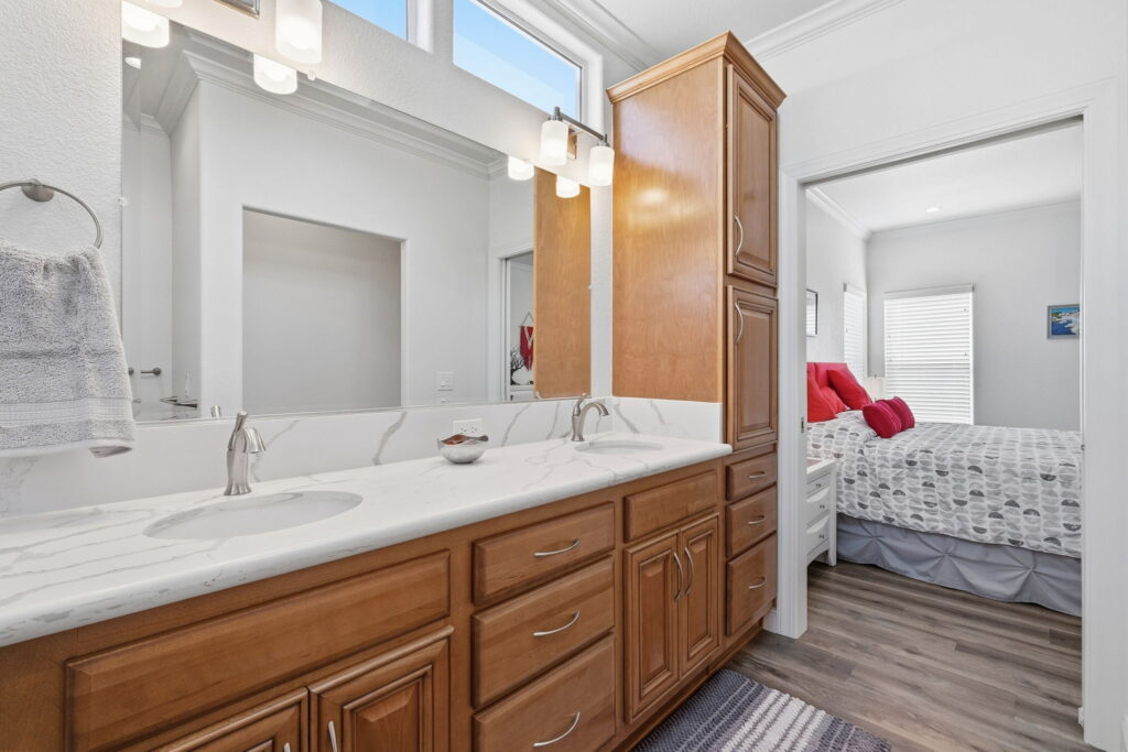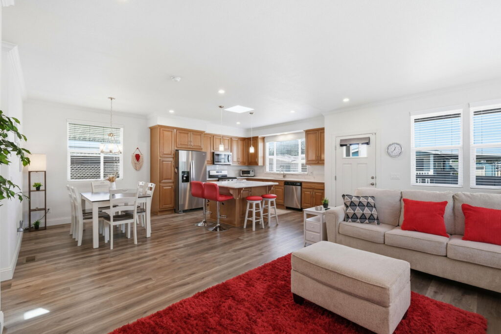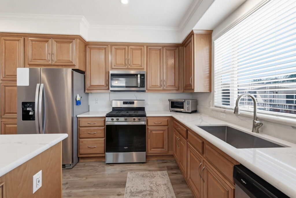 Visit us and experience the comfortable luxury of this wonderful, affordable Quality Home. This unique custom floor plan has many important and thoughtfully designed features not found in any other homes. Large rooms, beautiful bathrooms, wide doorways, 9-foot ceilings, crown moldings, beautiful high-quality laminate floors. The fabulous kitchen has elegant quartz counters, a large island with trash and recycle, pot and pan pull-outs, stainless steel appliances and tons of gorgeous cabinet space. Throughout the house there is plenty of comfortable space for furnishings, living, cooking, entertaining, relaxing, and watching TV! S/N 1507A/B.