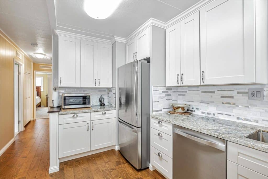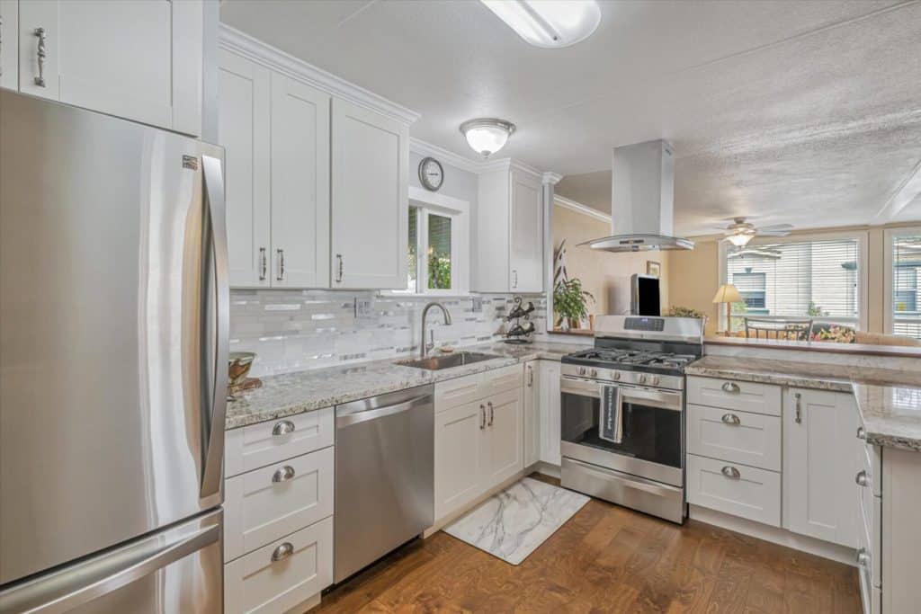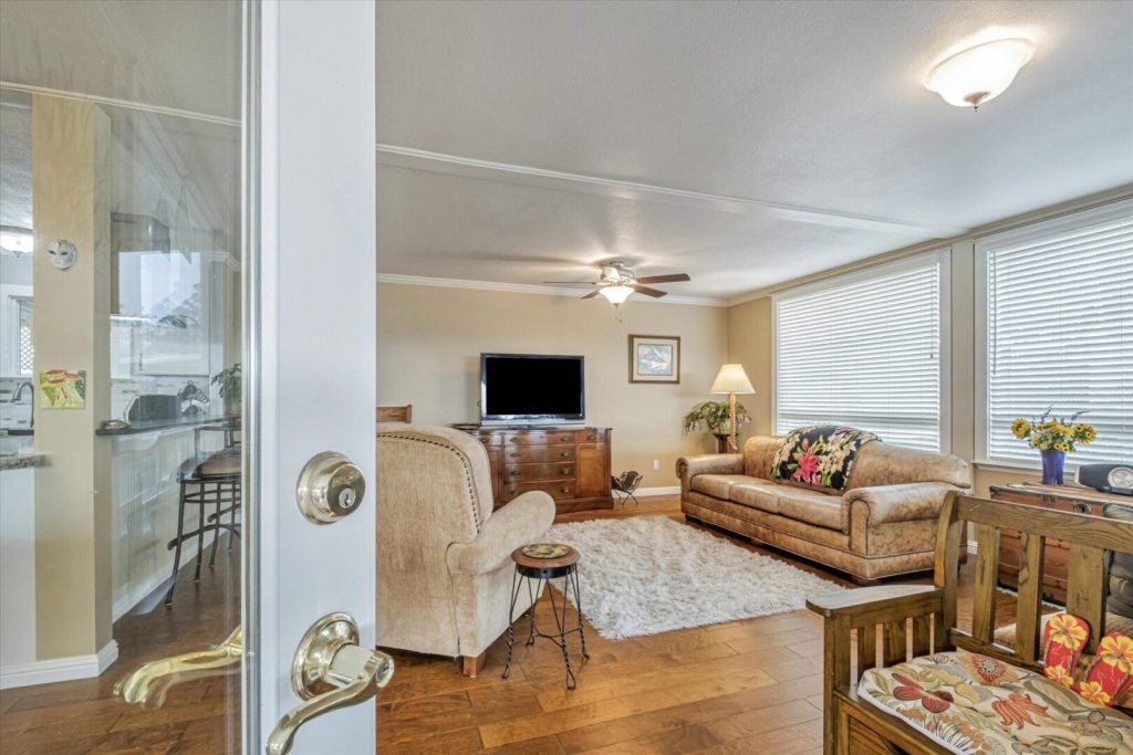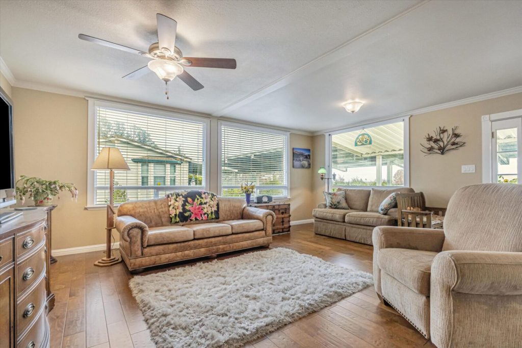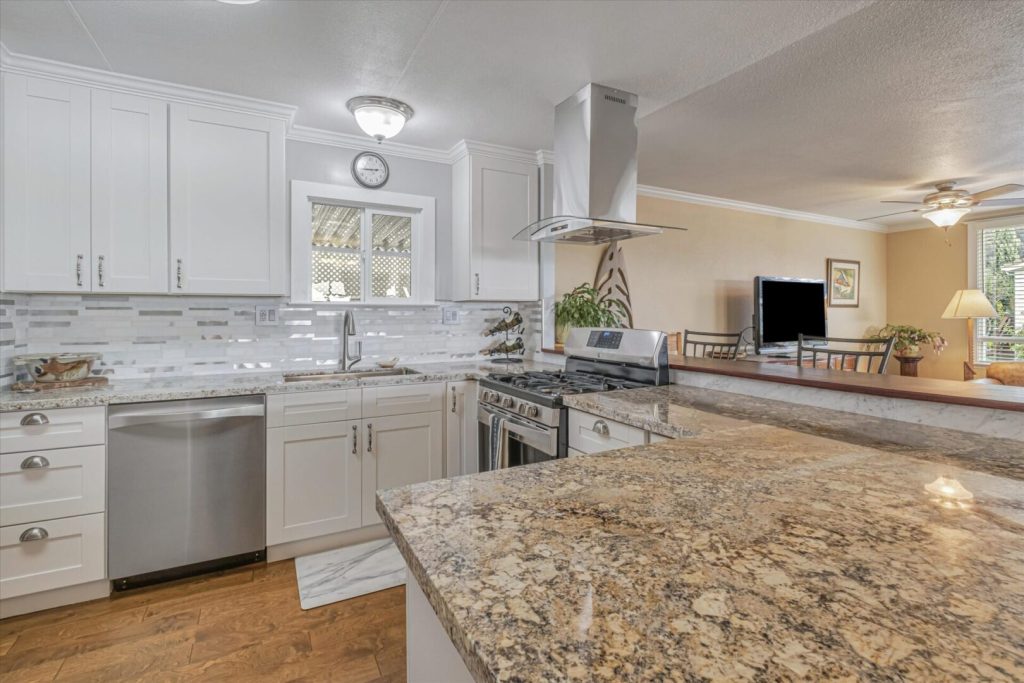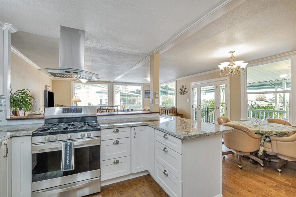 This terrific corner and view lot home has so many wonderful places to enjoy inside and out. Built in 1967, this 2BR/2BA 1200SF home has an inside-outside feel from the kitchen, living room and dining area where you can sit and look out at the tree views and distant mountain view on a clear day. Put your feet up, linger and enjoy the fresh air from the front porch. Step down onto the paved patio enjoy quiet time or entertaining while enjoying the beautiful Magnolia tree in your own yard. Inside, the home has been lovingly and tastefully remodeled and updated with new kitchen cabinets, granite countertops, beautiful coordinated backsplash tile, new stainless steel appliances and fixtures. The house was freshly painted with contemporary colors and beautiful new floors have been installed throughout. Both bathrooms have been beautifully remodeled with new cabinetry, granite countertops, tiled floors and new bathroom fixtures. Bedrooms have new mirrored closet doors, new carpeting. Windows have been updated throughout the home and many have pretty views to enjoy every day! Serial Number S4019A/B