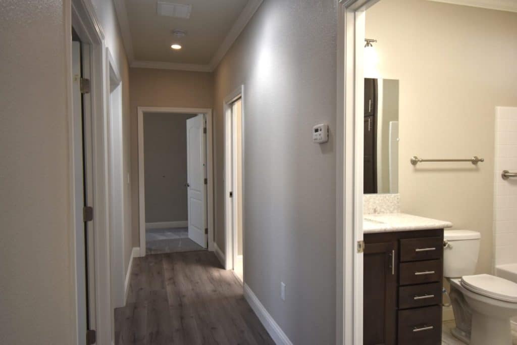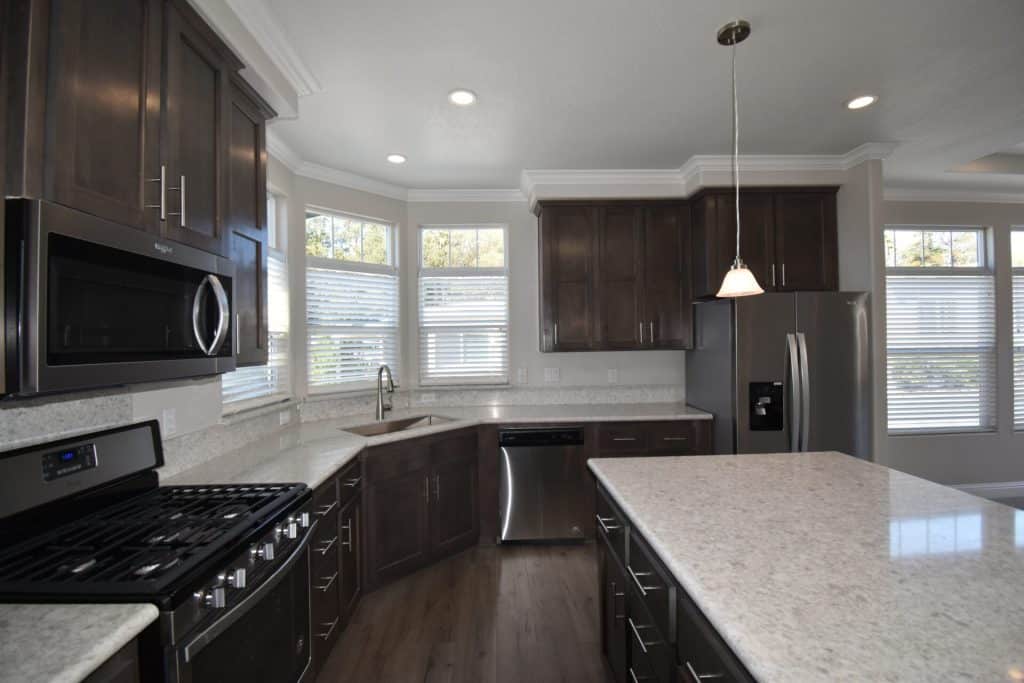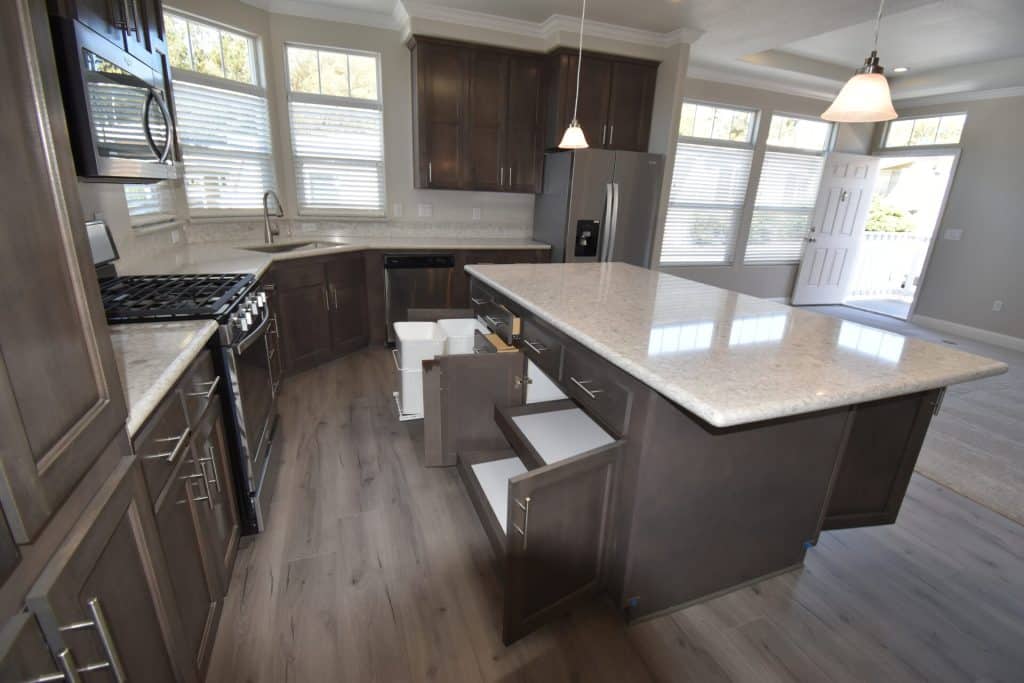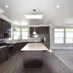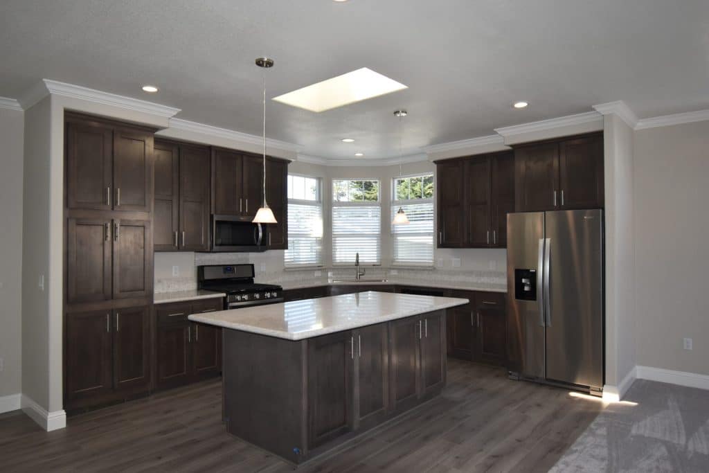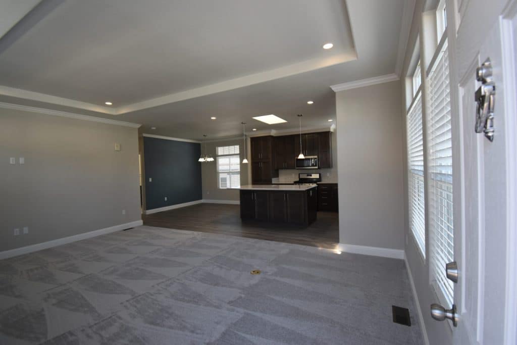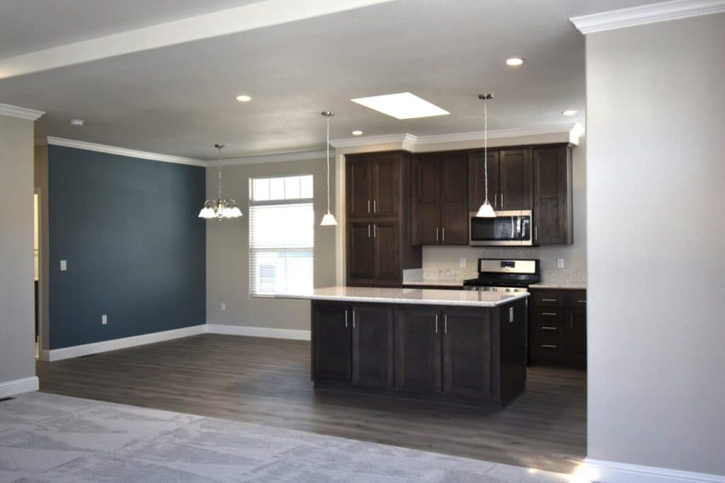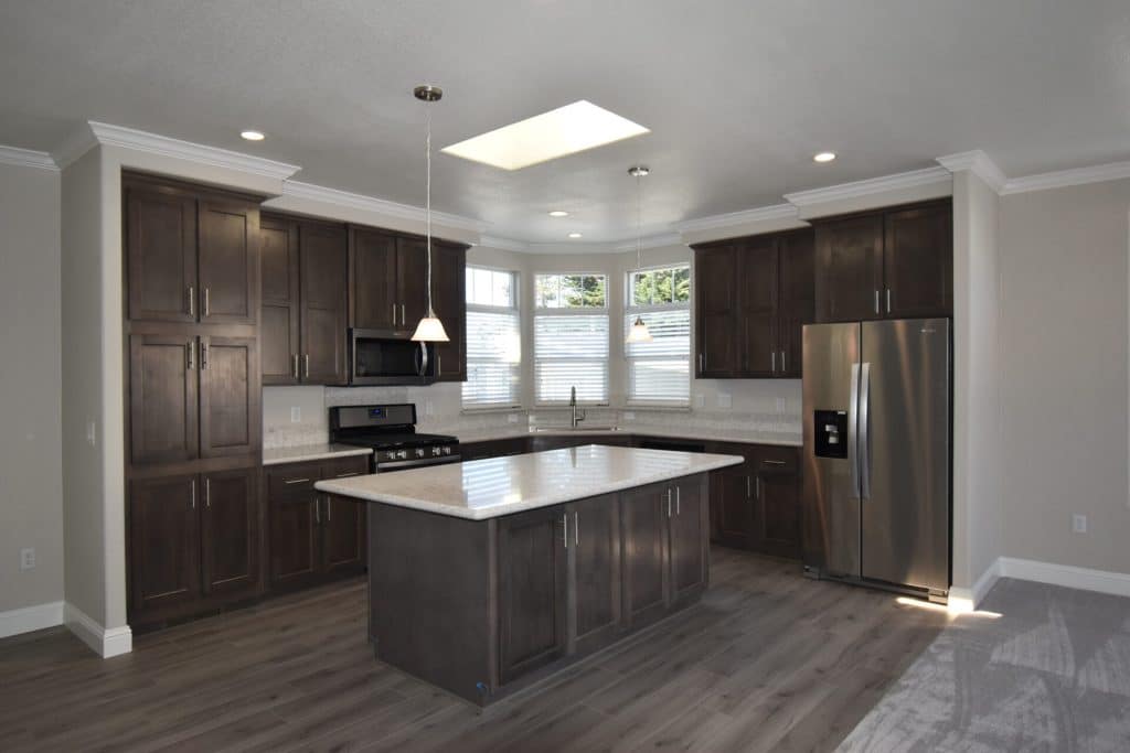 The 1533SF spacious open floor plan has large rooms, 3 bedrooms, beautiful luxury bathrooms, wide hallway and doorways, 9’ ceilings with crown moldings, beautiful high-quality laminate floors and upgraded carpet. The fabulous kitchen has beautiful quartz counters, large island that sits 4, stainless steel appliances and lots of gorgeous cabinets space. The primary bathroom has a gorgeous custom walk-in tile shower, quartz counters and lots of storage. Large windows, skylights and solar tubes flood the house with light. It also has the best utility room of any manufactured home you will find with washer and dryer, tons of extra storage, a coat closet and full pantry.