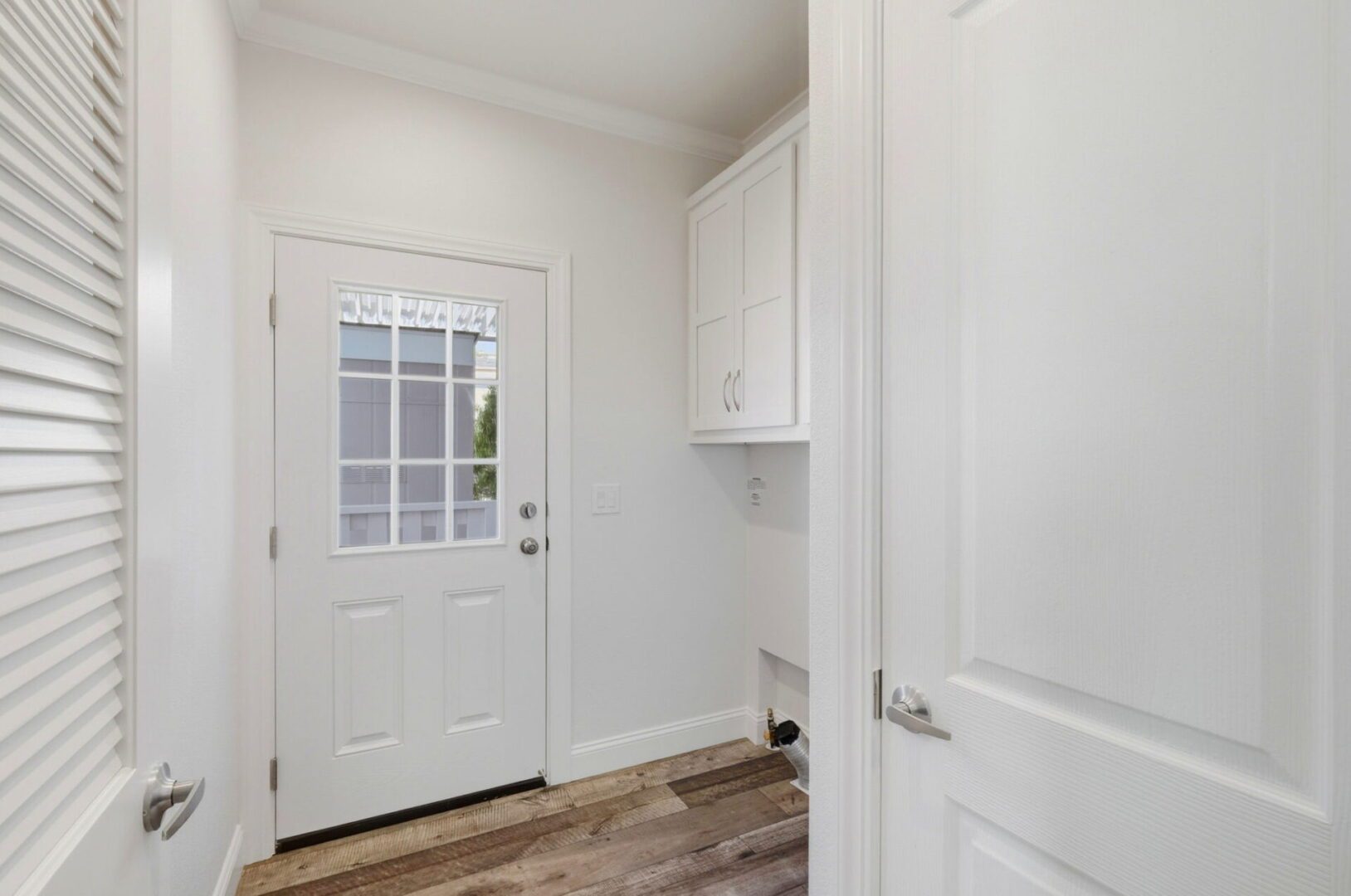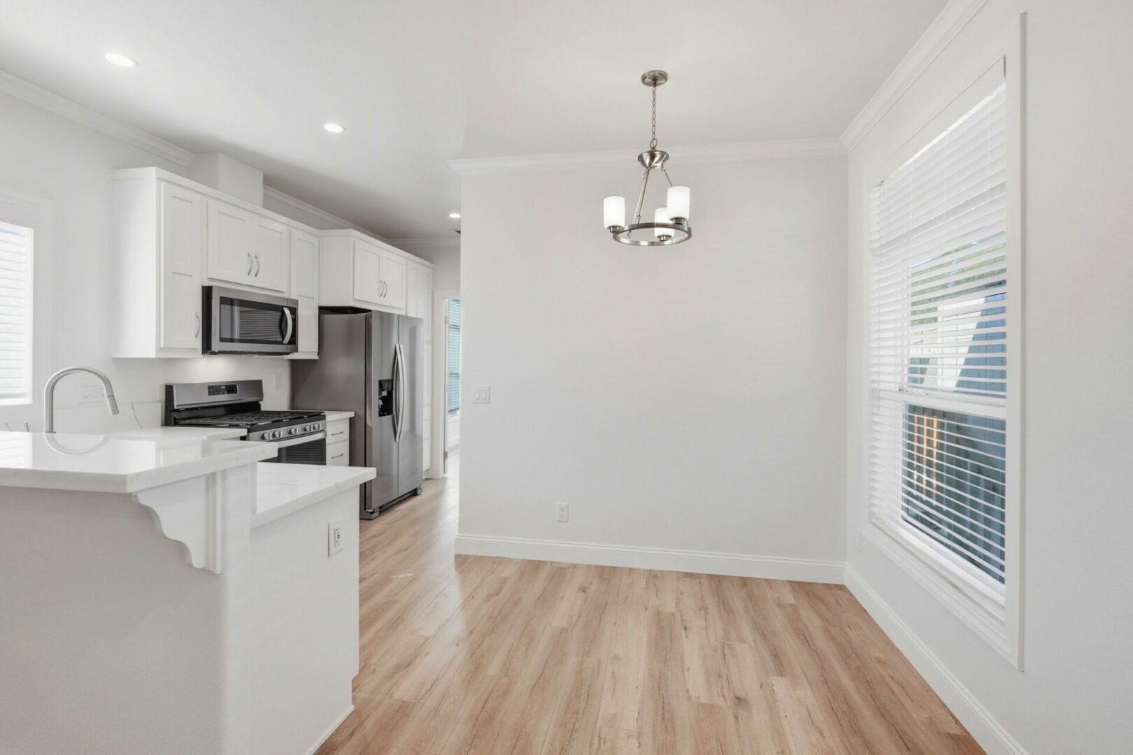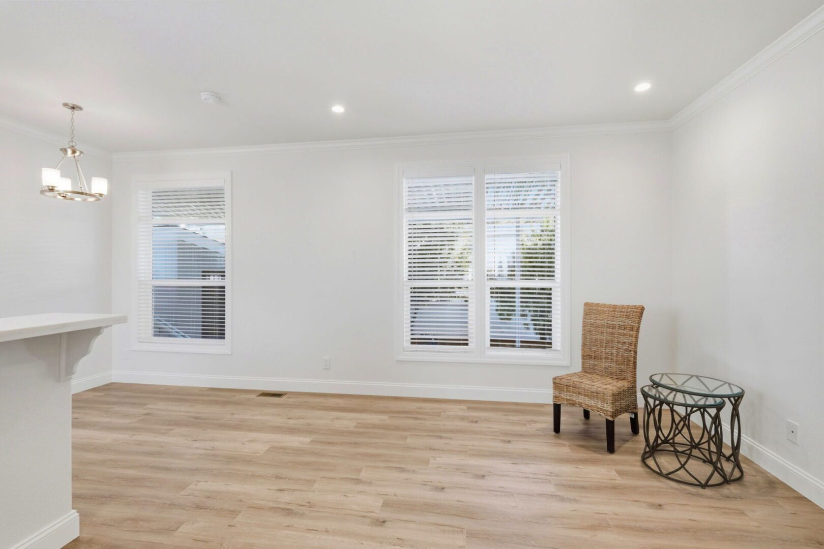 Beautiful 2 BR/2BA 864SF, Custom designed Quality Home is modern, light & bright with a spacious custom design and beautiful high-end features. This not so modest sized home is surprisingly spacious and has everything you need for comfort and easy living! 9′ High ceilings, 36′ doors large windows and 2 really nice sized bedrooms, a great kitchen, separate laundry room and Dining Living area that has plenty of room for Living and entertaining. Wonderful exterior has been extensively upgraded with brand new driveway, fencing, concrete walkways, utility upgrades, large paver patio and a custom shed. So much outdoor space to enjoy entertaining, relaxing and gardening! Beautiful white raised panel hardwood cabinets, Quartz counters in the kitchen, Stainless Steel appliances and two full bathrooms (one with tub and 1 with Shower) are all part of this gorgeous home. The primary bedroom is spacious with a lovely bathroom and walk-in closet. The living area and bedrooms have beautiful laminate floors. Separate laundry room with washer/dryer hookups and hardwood cabinets. Tall windows add a lot of natural light and crown molding throughout adds a lovely finishing touch. Rodeo Estates is one of the most wonderful 55+ communities in Santa Cruz where people are friendly, neighborly and love where they live, creating a great sense of community. Unbelievably low price! Brand New – with 7 years warranty! Call for a Private Appointment. Come Home for the Holidays! Serial number 2497A.