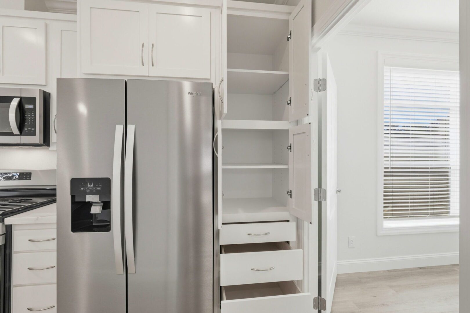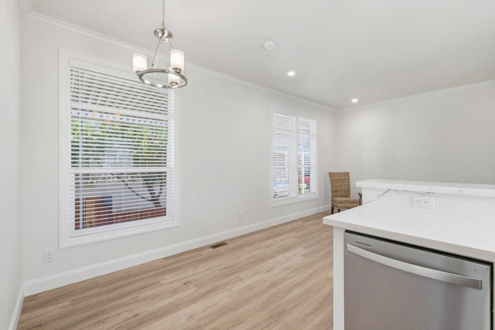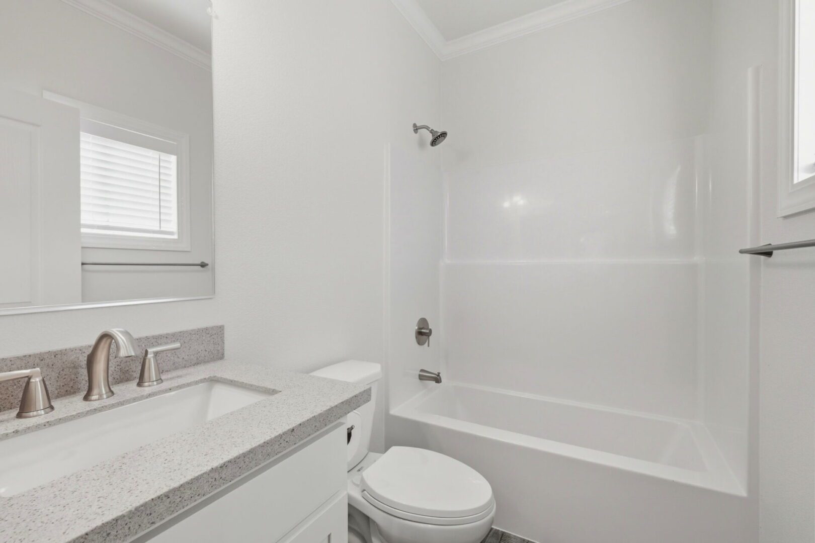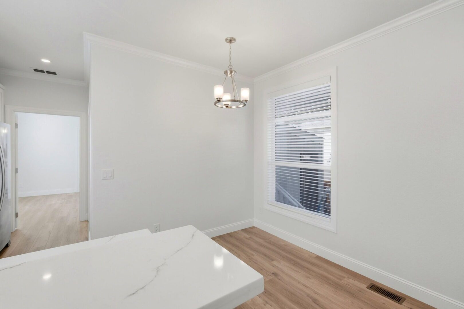 Beautiful 2 BR/2BA 864SF, Custom designed Quality Home is modern, light & bright with a spacious custom design and beautiful high-end features. This not so modest sized home is surprisingly spacious and has everything you need for comfort and easy living! 9′ High ceilings, 36′ doors large windows and 2 really nice sized bedrooms, a great kitchen, separate laundry room and Dining Living area that has plenty of room for Living and entertaining. Wonderful exterior has been extensively upgraded with brand new driveway, fencing, concrete walkways, utility upgrades, large paver patio and a custom shed. So much outdoor space to enjoy entertaining, relaxing and gardening! Beautiful white raised panel hardwood cabinets, Quartz counters in the kitchen, Stainless Steel appliances and two full bathrooms (one with tub and 1 with Shower) are all part of this gorgeous home. The primary bedroom is spacious with a lovely bathroom and walk-in closet. The living area and bedrooms have beautiful laminate floors. Separate laundry room with washer/dryer hookups and hardwood cabinets. Tall windows add a lot of natural light and crown molding throughout adds a lovely finishing touch. Rodeo Estates is one of the most wonderful 55+ communities in Santa Cruz where people are friendly, neighborly and love where they live, creating a great sense of community. Unbelievably low price! Brand New – with 7 years warranty! Call for a Private Appointment. Come Home for the Holidays! Serial number 2497A.